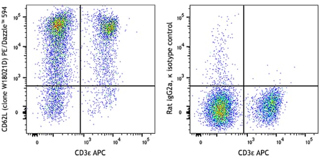 PE/Dazzle™ 594 anti-mouse CD62L [W18021D]; Isotype: Rat IgG2a, κ; Reactivity: Mouse; Apps: FC; Size: 100 μg