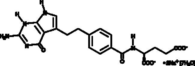 An antifolate with anticancer activity; an inhibitor of thymidylate synthase and dihydrofolate reductase (Kis = 109 and 7 nM, respectively); has increased potency for thymidylate kinase when polyglutaminated (Ki = 1.3 nM); an inhibitor of glycinamide ribonucleotide formyltransferase (Kis = 9,300 and 65 nM for the non-glutaminated and polyglutaminated enzyme) and aminoimidazole carboxamide ribonucleotide formyltransferase (Kis = 3,600 and 265 nM for the non-glutaminated and polyglutaminated, respectively); inhibits proliferation of CCRF-CEM cells but not 5,10-dideazatetrahydrofolate-resistant CR15 cells (IC50s = 0.254 and 200 µM, respectively); reduces tumor growth in A549, H1299, and PC-9 NSCLC mouse xenograft models but not in models using the same cell lines overexpressing thymidylate kinase