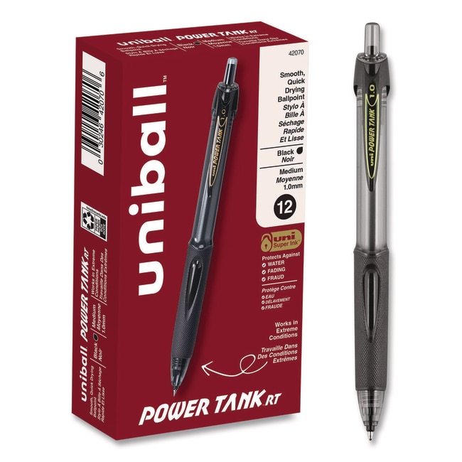 Essendant uniball Power Tank RT Ballpoint Pen Retractable Bold 1 mm Black Ink Smoke/Black Barrel Dozen