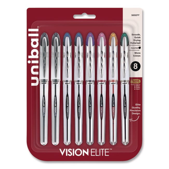 Essendant uniball VISION ELITE Hybrid Gel Pen Stick Fine 0 5 mm Assorted Ink and Barrel Colors 8/Pack