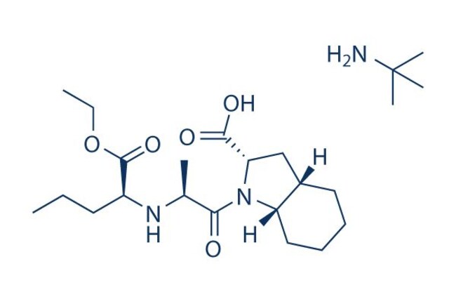 Perindopril Erbumine (S9490-3) is a pro-drug and metabolized in vivo by hydrolysis of the ester group to form Perindoprilat, the biologically active¿metabolite, a potent ACE inhibitor with IC50 of 1.05 nM. Perindopril Erbumine is used for in vivo studies and Perindoprilat is recommened for in vitro research. *For Research & Development use only. Product is not intended for drug, household, or human consumption.