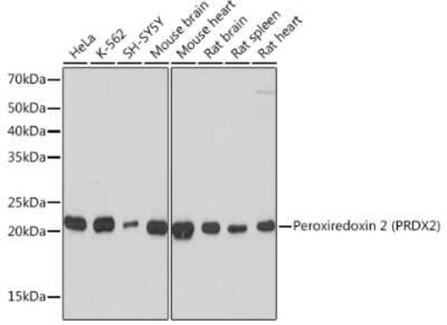 Peroxiredoxin 2 Monoclonal antibody specifically detects Peroxiredoxin 2 in Human, Mouse, Rat samples. It is validated for Western BlotSpecifications