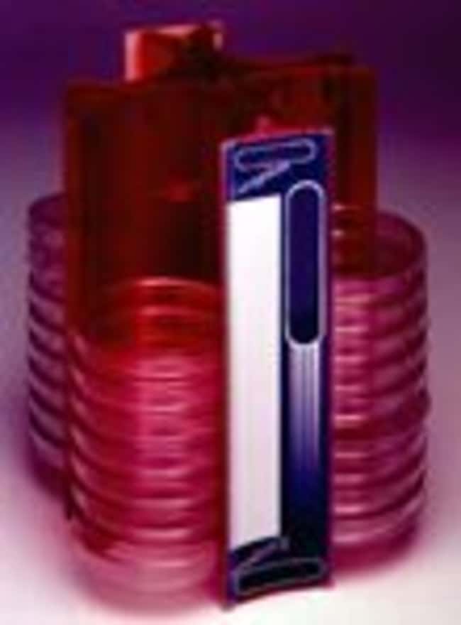 This rack solves the problem of toppling stacks of petri dishes. Cleverly designed elastic grippers hold plates snuggly in place-even while in transit. Plates store inverted to eliminate buildup of condensation. Available in colors to dress up the lab or help identify plates. Constructed of heavy duty polycarbonate for rugged durability. Autoclavable.