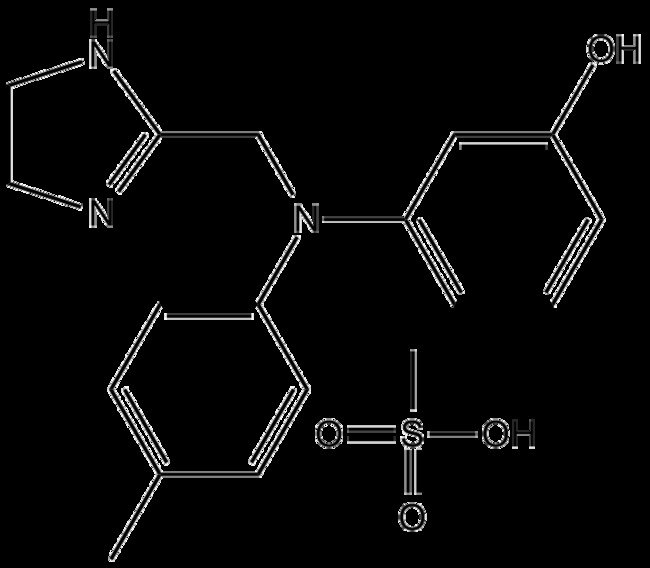 Phentolamine Mesylate (CAS 65-28-1) is a non-selective alpha-adrenergic antagonist that blocks both alpha 1- and alpha 2-adrenoreceptors By preferentially inhibiting presynaptic alpha 2-adrenoreceptors phentolamine increases the release of neurotransmitters such as noradrenaline leading to enhanced functional biological modulation (FBM) while also exerting effects on postsynaptic alpha 1-adrenoreceptors This dual antagonism makes phentolamine a valuable tool for investigating adrenergic signaling pathways neurotransmitter regulation and vascular tone in various biomedical research settings