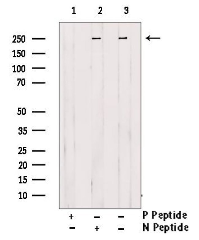 Antibody detects endogenous levels of Desmoplakin only when phosphorylated at Ser165/166.