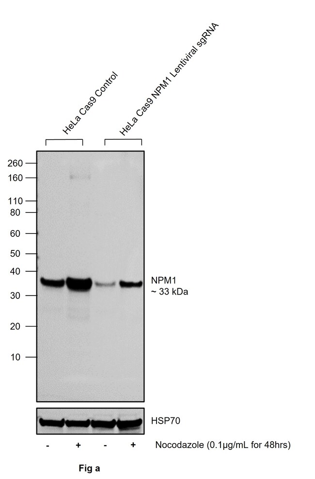 Antibody detects endogenous levels of Nucleophosmin only when phosphorylated at Ser70.