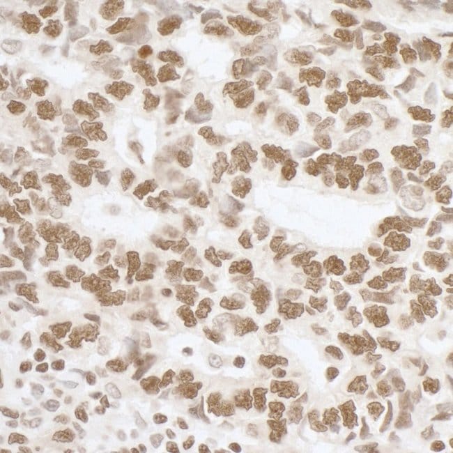 The recommended shelf life for this product is 1 year from date of receipt. Application Note: For IHC, epitope retrieval with citrate buffer pH 6.0 is recommended for FFPE tissue sections. Based on 100% sequence identity, this antibody is predicted to react with Orangutan