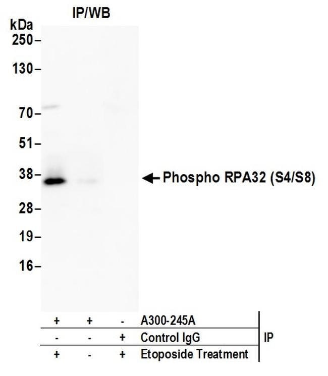 Phospho-RPA32 (Ser4, Ser8) Rabbit anti-Human, Mouse, Polyclonal, Bethyl Laboratories