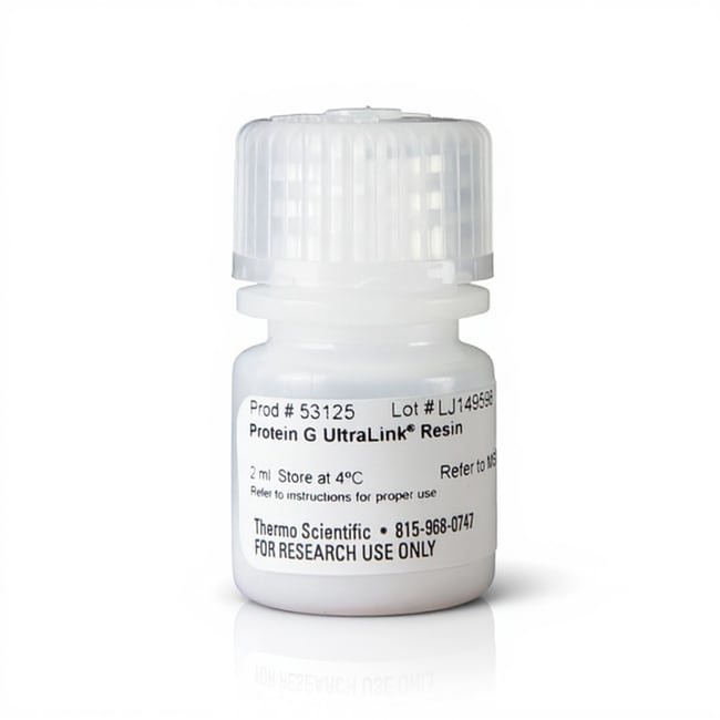 Thermo Scientific™ Pierce Protein G UltraLink Resin is an extremely durable beaded polyacrylamide support to which recombinant Protein G has been immobilized for use in IgG purification methods.