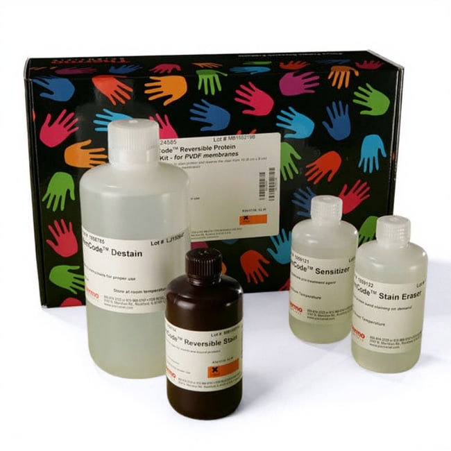 Reversible protein stain, destain and eraser solutions; PVDF kit also contains a sensitizer solution