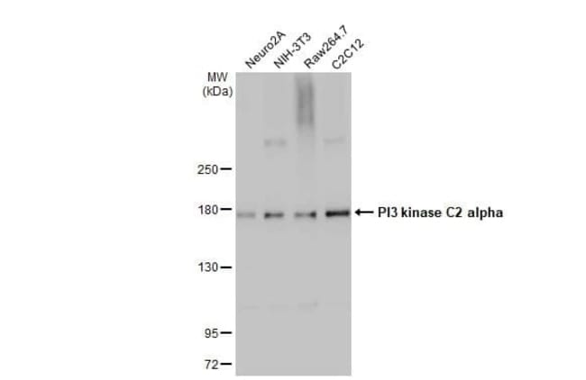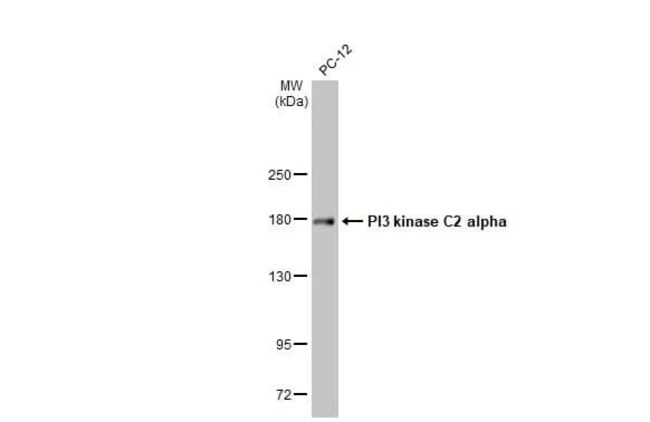 | Immunogen | Carrier-protein conjugated synthetic peptide encompassing a sequence within the center region of human PIK3C2A. The exact sequence is proprietary. |