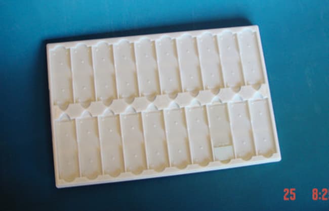 This durable, ABS hard plastic slide tray will hold up to 20 standard microscope slides 75 x 25 mm (3x1"). Ivory color consists of two rows, each with securely holds 10 slides. Each numbered cavity has thumb cut and raise notches for easy to remove the slide. Stackable.