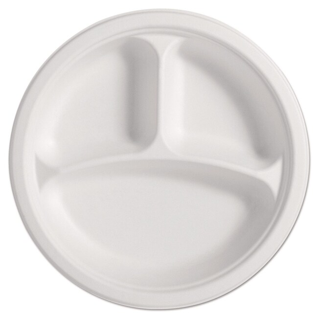 Get the impressive strength of molded fiber at an economical price Extra-rigid dinnerware supports whatever you dish out without requiring wasteful doubling Decorative highly practical rim edge helps prevent spillage Three-Compartment Plate Dinnerware Type- 3-Compartment Plate Material Type- Paper Material(s)- Molded Fiber Shape- Round