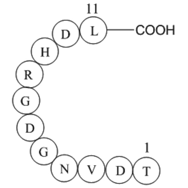 Platelet Membrane Glycoprotein IIB Peptide 296-306 is a peptide inhibitor targeting glycoprotein IIb (GP IIb) a component of the platelet surface GP IIb-IIIa integrin complex It is designed to disrupt GP IIb-IIIa receptor interactions thereby inhibiting platelet aggregation Platelet Membrane Glycoprotein IIB Peptide 296-306 exerts its biological activity primarily through competitive inhibition of GP IIb binding interfering with platelet adhesion mediated by fibrinogen fibronectin vitronectin or von Willebrand factor Based on these pharmacological properties Platelet Membrane Glycoprotein IIB Peptide 296-306 holds research potential in studies of platelet function thrombosis mechanisms and integrin-mediated signal transduction pathways