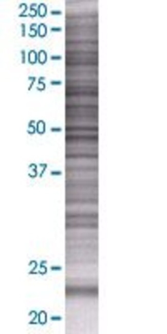 | Quality Control Testing | Transient overexpression cell lysate was tested with anti-PLDN antibody (Mfr. No. H00026258-B01) by Western Blot. |