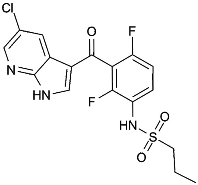 PLX-4720 (CAS 918505-84-7) is a selective inhibitor of the oncogenic kinase B-RafV600E a frequently observed activating mutation in cancer Structurally derived from a 7-azaindole scaffold PLX-4720 inhibits B-RafV600E with an IC50 of 13 nM exhibiting marked selectivity in comparison to wild-type B-Raf (IC50 160 nM) and other kinases such as FRK CSK SRC FAK FGFR and Aurora A (IC50 1000 nM) PLX-4720 decreases ERK phosphorylation in B-RafV600E-containing cells induces growth arrest and apoptosis in B-RafV600E melanoma lines and delays tumor progression in xenograft models harboring this mutation It represents a valuable tool in cancer research targeting B-Raf signaling pathways