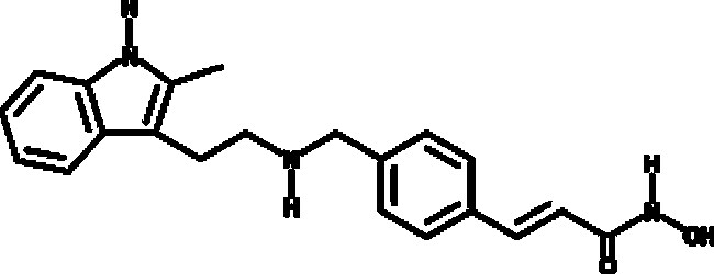 A pan-HDAC inhibitor (Kis = 0.6-31 nM for HDAC1-11); inhibits growth in a panel of 37 human or mouse lung cancer cell lines, including SCLC, NSCLC, and mesothelioma cells (IC50s = 4-175, 5-310, and 5-470 nM, respectively); induces tumor regression in BK-T and RG-1 SCLC mouse xenograft models at 20 mg/kg i.p.