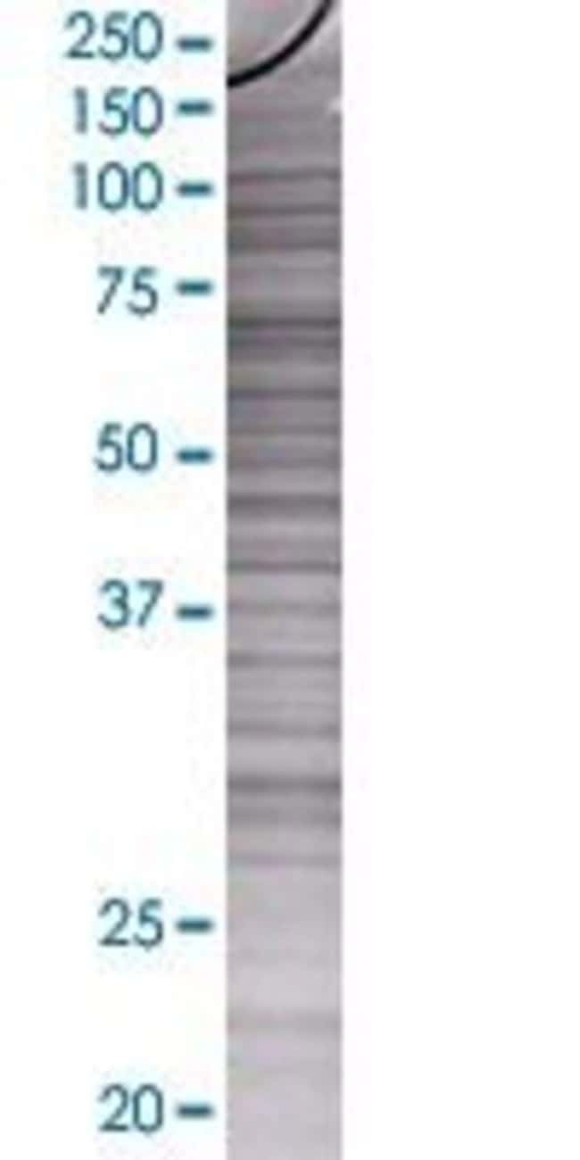 Quality Control Testing | Transient overexpression cell lysate was tested with anti-POLS antibody (Mfr. No. H00011044-B01) by Western Blot. |
