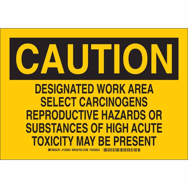 Brady™ Polyest. Sign: CAUTION - DESIG. WORK AREA SELECT CARCINOGENS REPRODUCT. HAZARDS OR SUBSTANCES OF HIGH ACUTE…