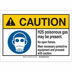 Brady™ Polyest. Sign: CAUTION: H2S POIS. GAS MAY BE PRESENT. NO OPEN FLAMES. WEAR NECES. PROTECT. EQUIP AND PROCEED w/ CAUTION