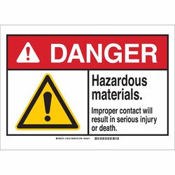 Brady™ Polystyrene Sign: HAZARDOUS MATERIALS. IMPROPER CONTACT WILL RESULT IN SERIOUS INJURY OR DEATH.
