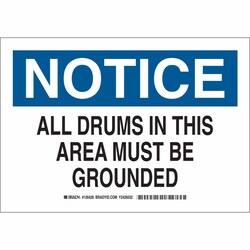 Brady™ Polystyrene Sign: NOTICE - ALL DRUMS IN THIS AREA MUST BE GROUNDED