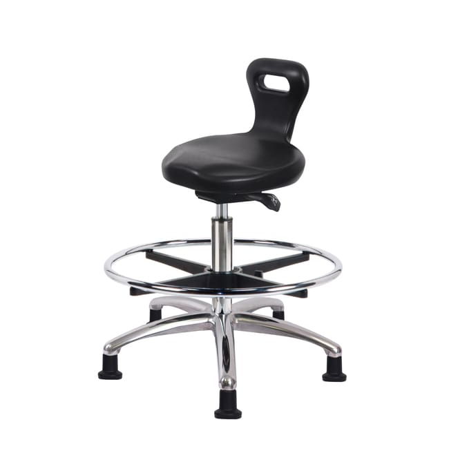 Fisherbrand™ Polyurethane ESD Serpent Sit-Stand Stool Chrome Medium Bench Height with Chrome Foot Ring and ESD Stationary Glides