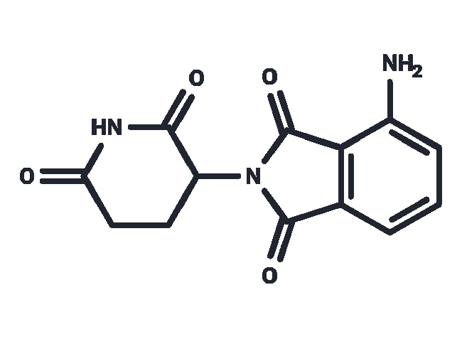 Pomalidomide inhibits TNF-α release in LPS stimulated human PBMCs (IC50: 13 nM). It is an anti-angiogenic agent and an immunomodulator.
