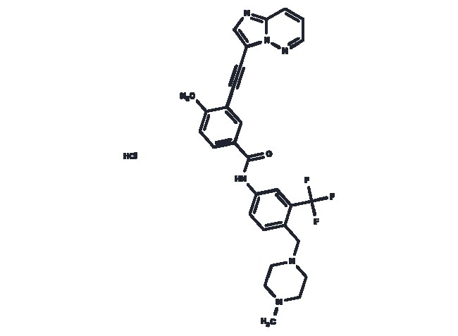Also available in 25 mg 50 mg 100 mg 200 mg 500 mg and bulk. Please contact Fisher for quotes. Ponatinib Hydrochloride (AP-24534 Hydrochloride) is a hydrochloride of ponatinib. Ponatinib is an orally active multi-targeted kinase inhibitor with IC50s of 0.37 nM 1.1 nM 1.5 nM 2.2 nM and 5.4 nM for Abl PDGFR(alpha) VEGFR2 FGFR1 and Src respectively. purity: 100%