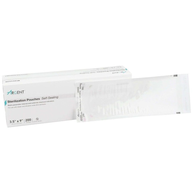 Sterilization Pouch McKesson Argent™ Sure-Check Ethylene Oxide (EO) Gas / Steam 3-1/2 X 9 Inch Transparent / Blue Self Seal Paper / Film Class 4 indicator on outside and inside of the pouch, compatible with steam and ethylene oxide Triple seal (heat sealed) secured edges to help prevent separation Secure Seal -- Extra wide chevron seal to help prevent instrument breaching Medical grade paper Clear transparent film to view instrument Thumb notch makes pouch easy to open and grip 3½ x 9 inches