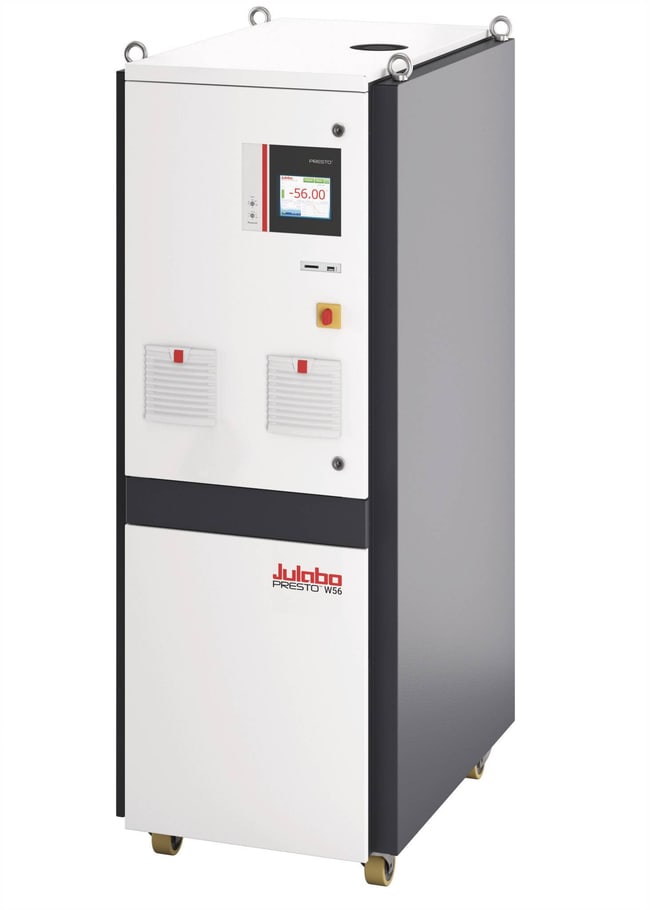JULABO PRESTO Highly Dynamic Temperature Control Systems for highly precise temperature control of external applications Systems offer rapid heating and cooling rates The hydraulically sealed heat exchanger design affords a wide working temperature range without changing fluids All units feature a color TFT touch screen interface for unit operation external integration and programming Instruments cover a working temperature range of -85 to 250C Up to three user levels with password management Systems incorporate USB (host and device) Ethernet SD-card slot RS232 port stand-by input and Pt100 external temperature sensor port The graphite bearing centrifugal pressure pump is lubricated by the bath fluid All models (except for A30) can operate under pressure control to safeguard pressure sensitive applications (such as jacketed glass reactors) Air and water-cooled versions available Additional accessories available