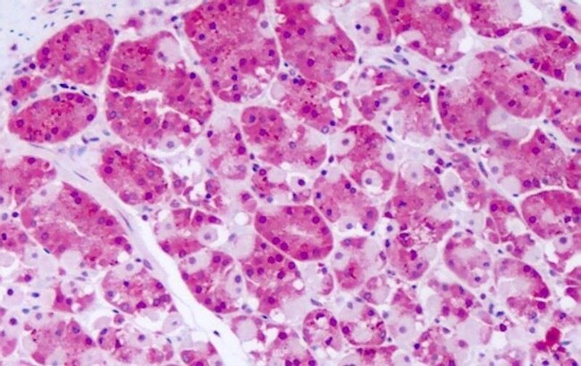 PRKD2 (PKD2) is a member of the protein kinase D serine/threonine protein kinase family. PRKD2 is a component in the signal transduction pathway induced by phorbol esters and the CCK b gastrin receptor. It exhibits the strongest homology to the serine threonine protein kinases PKD/PKC and PKCnu, particularly in the duplex zinc finger-like cysteine-rich motif, in the pleckstrin homology domain and in the protein kinase domain. In contrast, it shows only a low degree of sequence similarity to other members of the PKC family.