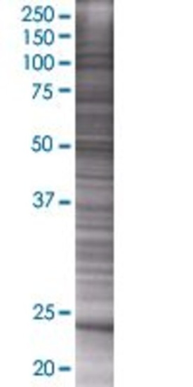 Quality Control Testing | Transient overexpression cell lysate was tested with anti-PSMD10 antibody (Mfr. No. H00005716-B01) by Western Blot. |