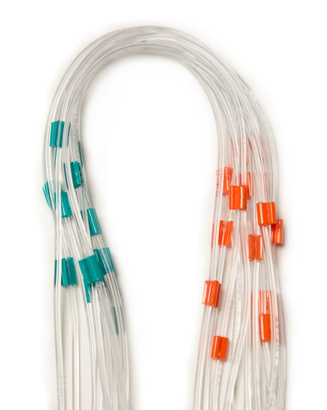 EZkem’s 2-stop 6″ collar x 36″ length peristaltic pump tubing is used for Ismatec peristaltic pumps in Alpkem, OI Analytical, Latchat and other brands of autoanalyzers for flow injection (FIA) and segmented flow (SFA) analysis. A000352 Orange/Green 0.015ID 12/pk