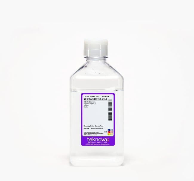 Teknova QB Citrate Buffer Solution, pH 5.0. 1000mL, Sterile. 2 Pack.