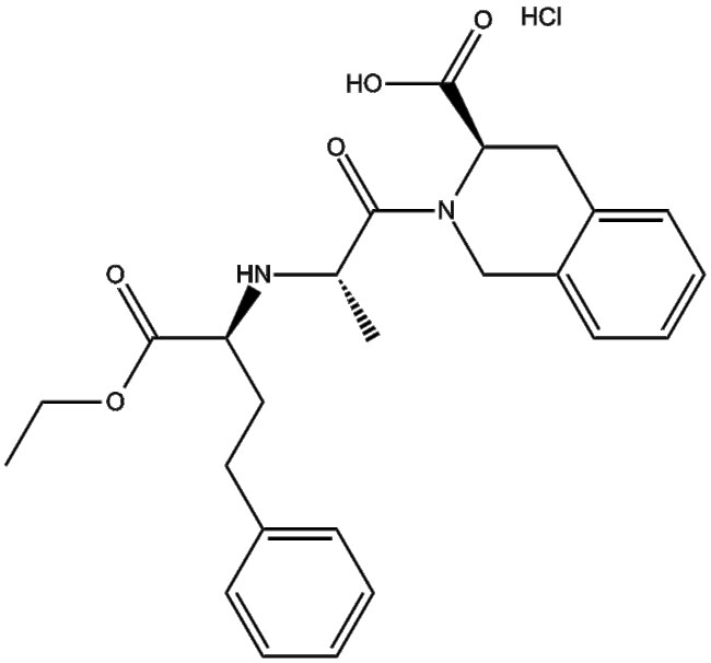 Quinapril hydrochloride (CAS 82586-55-8) is an esterified precursor that undergoes hepatic conversion to quinaprilat an active inhibitor of angiotensin-converting enzyme (ACE) By impeding the conversion of angiotensin I to angiotensin II quinapril modulates the renin-angiotensin-aldosterone system resulting in decreased vasoconstriction and reduced aldosterone secretion This molecule is frequently utilized in cardiovascular research to investigate mechanisms underlying hypertension heart failure and the biological effects of ACE inhibition on vascular and renal systems