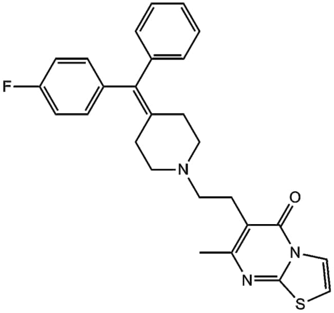 R 59-022 (CAS 93076-89-2) is a small molecule inhibitor of diacylglycerol kinase (DGK) demonstrating an IC50 of 2 8 M for DGK activity By inhibiting the conversion of 1-oleoyl-2-acetylglycerol to phosphatidic acid R 59-022 modulates diacylglycerol signaling pathways The compound also exhibits antagonistic effects at serotonin (5-HT) receptors and can induce activation of protein kinase C (PKC) In cellular studies R 59-022 enhances thrombin-induced diacylglycerol accumulation in platelets and suppresses phosphatidic acid formation in neutrophils It serves as a valuable tool for investigating DGK-mediated processes and signal transduction mechanisms
