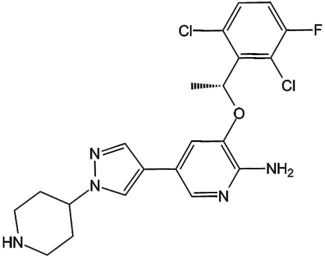 (R)-Crizotinib (CAS 877399-52-5) is an ATP-competitive orally bioavailable inhibitor targeting c-Met kinase with a reported Ki of 4 nM It inhibits phosphorylation of wild-type c-Met in various endothelial and tumor cell lines at an IC50 of approximately 11 nM In cell-based assays the compound reduces proliferation and induces apoptosis in GTL-16 gastric cancer cells inhibits hepatocyte growth factor (HGF)-mediated migration and invasion of human NCI-H441 lung cancer cells and suppresses cell scattering growth (R)-Crizotinib demonstrates tumor growth inhibition efficacy across diverse xenograft models including gastric lung renal glioblastoma and prostate cancers highlighting its utility in oncology research