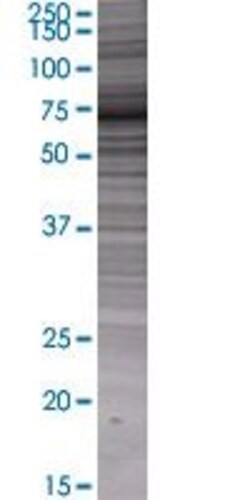 Quality Control Testing | Transient overexpression cell lysate was tested with anti-RAB11FIP5 antibody (Mfr. No. H00026056-B01) by Western Blot. |