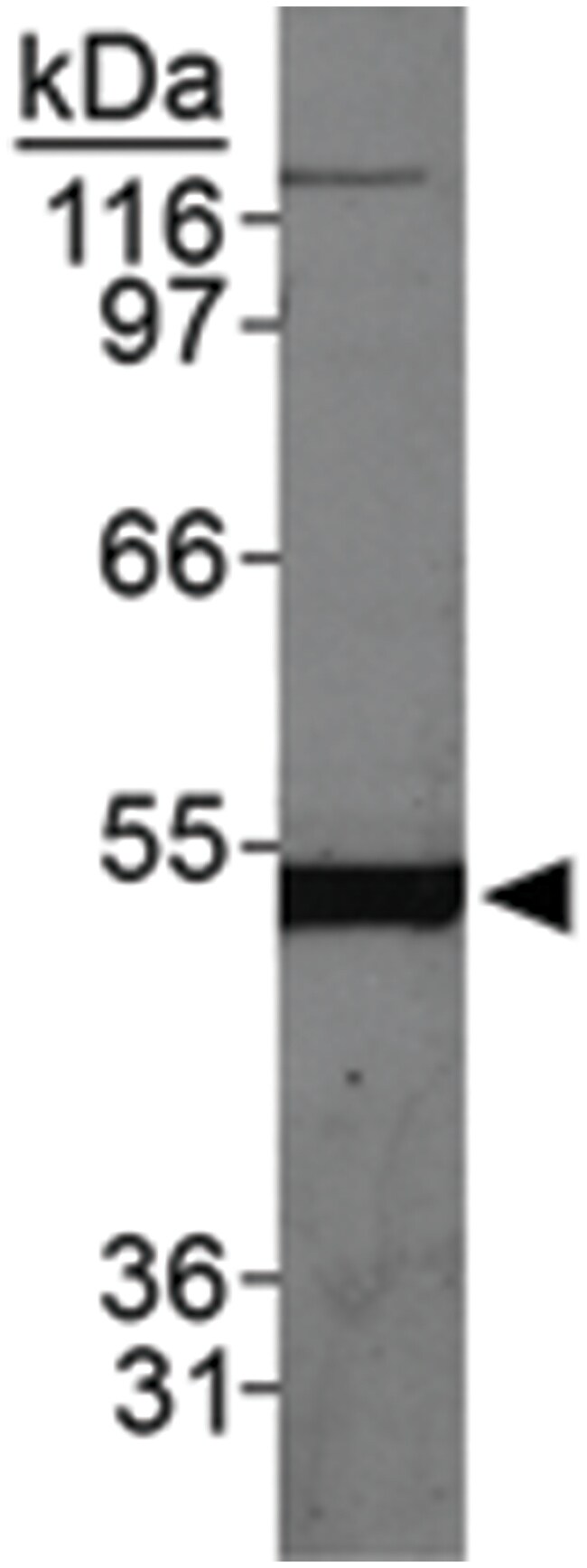 Immunocytochemistry (1:50) Immunofluorescence (1:50) Immunohistochemistry (Formalin/PFA-fixed paraffin-embedded sections) (1:400) Western Blot (1:10000) The optimal working dilution should be determined by the end user. | |