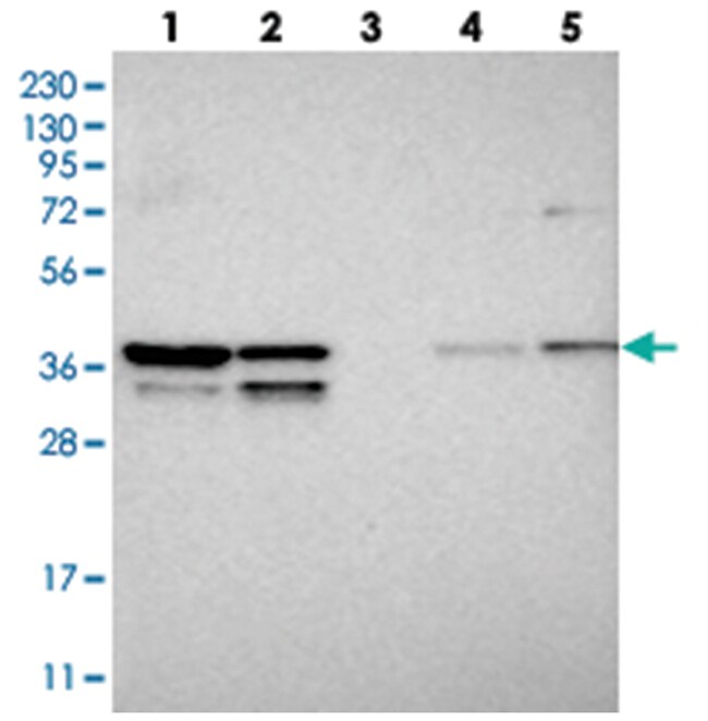 Immunohistochemistry (1:50-1:200) Western Blot (1:250-1:500) Immunofluorescence (1-4 ug/mL) The optimal working dilution should be determined by the end user. | |