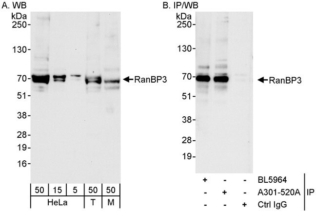 RanBP3 Rabbit anti-Human, Mouse, Polyclonal, Bethyl Laboratories
