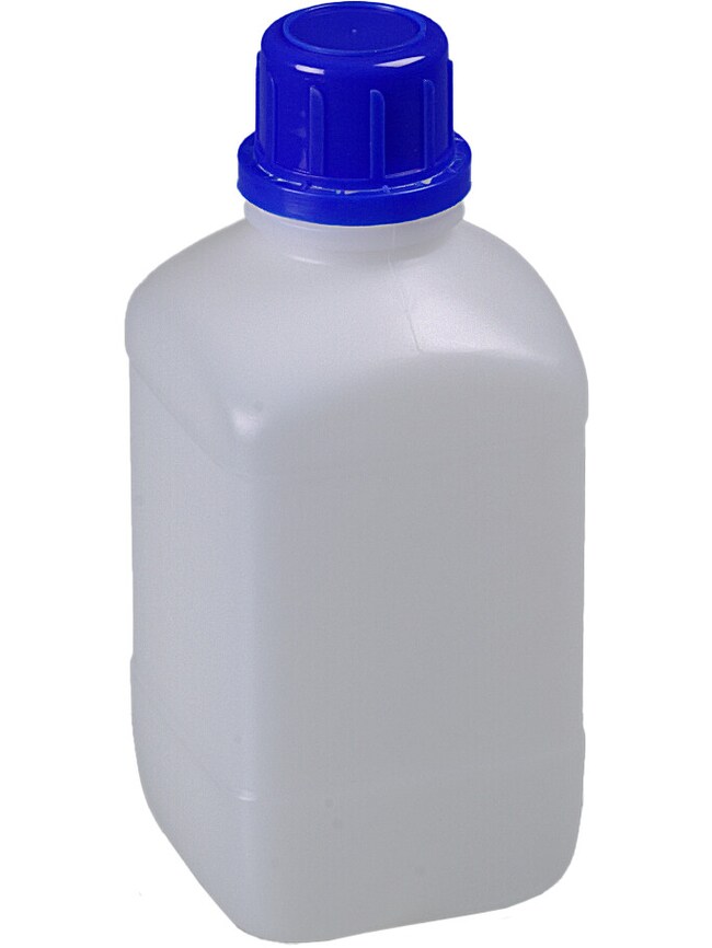 The blue PP tamper evident screw cap with conical seal and tamper evidence ring ensures leak proof storage. The square bottle shape combined with the recessed label area facilitates labeling and organization. The narrow neck allows for precise dispensing and prevents spillage.