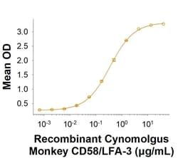 Measured by its binding ability in a functional ELISA. Recombinant Cynomolgus Monkey CD58/LFA-3 Fc Chimera (Catalog # 11432-CD) binds to recombinant Human CD2 Fc Chimera Protein (Catalog # 1856-CD ) with a ED50 of 0.150-2.00 μg/mL.