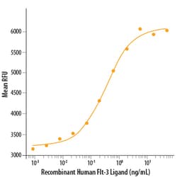 Measured in a cell proliferation assay using BaF3 mouse pro-B cells transfected with mouse Flt-3. The ED50 for this effect is 0.2-1 ng/mL.