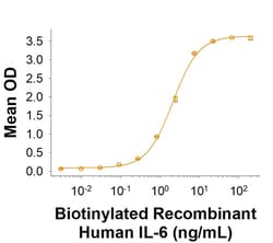 Measured by its binding ability in a functional ELISA. Recombinant Human IL-6R alpha Fc Chimera (Catalog # 11399-SR) binds Biotinylated Recombinant Human IL-6 (Catalog # BT7270 ) with an ED50 of 0.750-7.50 ng/mL.