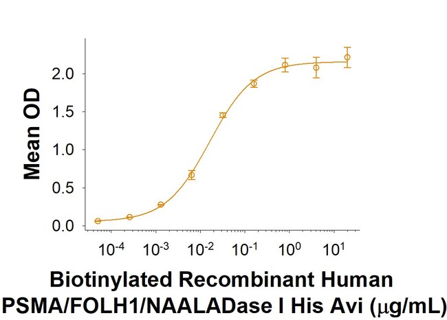 | Source | Chinese Hamster Ovary cell line, CHO-derived human PSMA/FOLH1/NAALADase I protein Avi-tag HHHHHH Human PSMA/FOLH1/NAALADase I (Lys44-Ala750) (N-terminus) Accession # Q04609.1 (C-terminus) |