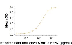 Measured by its binding ability in a functional ELISA. When Recombinant Human Galectin-1 (Catalog # 1152-GA ) immobilized at 10.00 μg/mL, 100 μL/well, the concentration of Recombinant Influenza A Virus H3N2 Hemagglutinin His-tag (Catalog # 10944-HA) that produces 50% of the optimal binding response is 0.35-3.50 μg/mL.