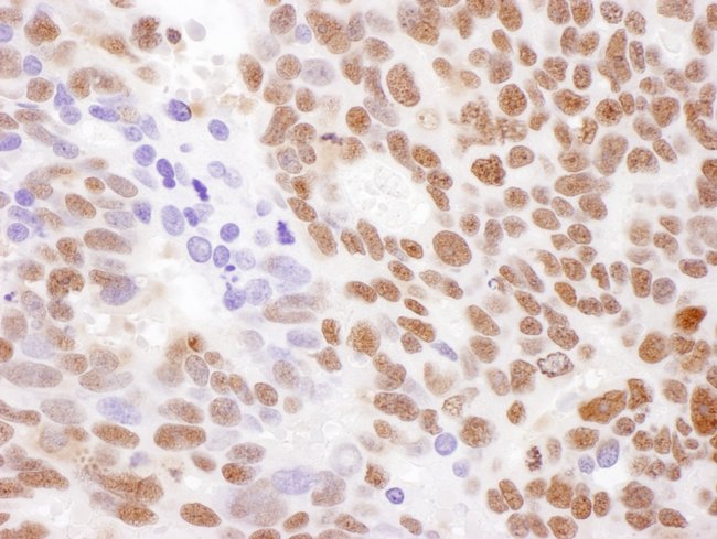 The recommended shelf life for this product is 1 year from date of receipt. Application Note: For IHC, epitope retrieval with citrate buffer pH 6.0 is recommended for FFPE tissue sections. Based on 100% sequence identity, this antibody is predicted to react with Orangutan