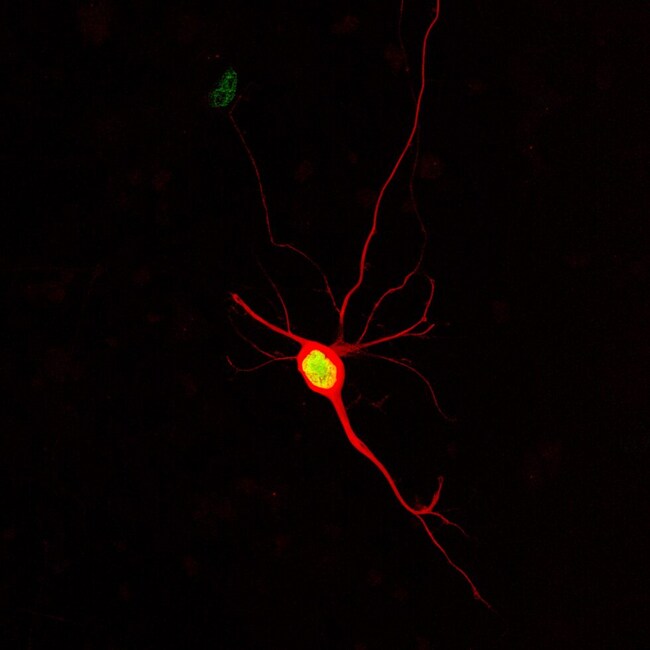 Bright, red fluorescent protein fused to Tau for live-cell imaging—no fixation, staining, or cell lysis required. Visualize cytoskeletal structures and cell morphology, over hours to days, in living cells. Delivered using Montana Molecular’s Big Sky BacMam vector for enhanced expression across a wide range of cell types, including primary cultures and iPSCs. Ideal for non-destructive studies of Tau organization, cellular phenotypes, and high-content imaging.